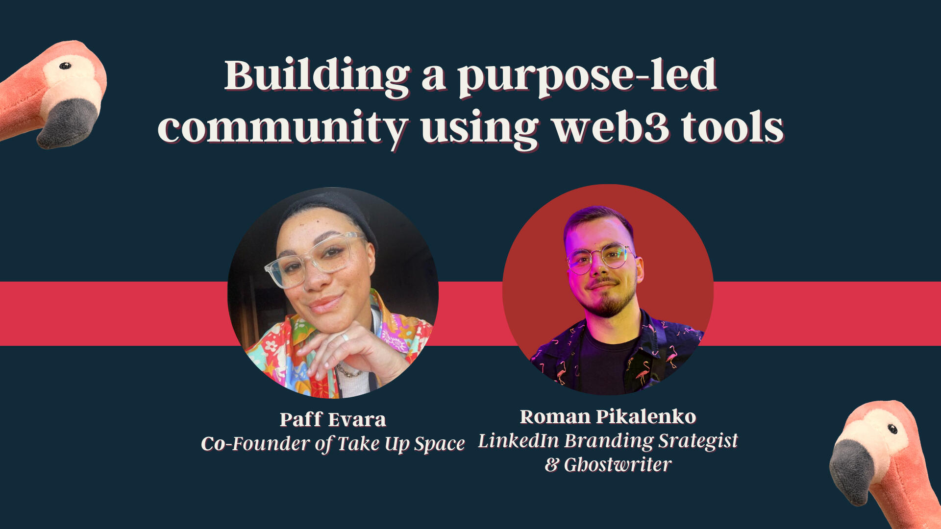 Join Paff Evara and me where we talk about their path (pun intended) to building a purposeful and decentralized community - Take Up Space - as well as:→ Empowering your community through ownership